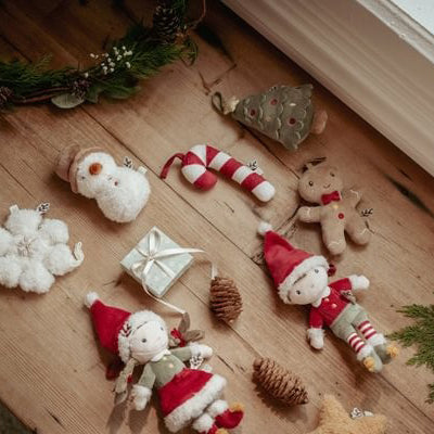 Haz más festivo tu árbol de Navidad con estos bonitos colgantes para el árbol. El set consiste 4 decoraciones blanditas. Rosa muñeca blandita, una galleta de jengibre, un árbol de