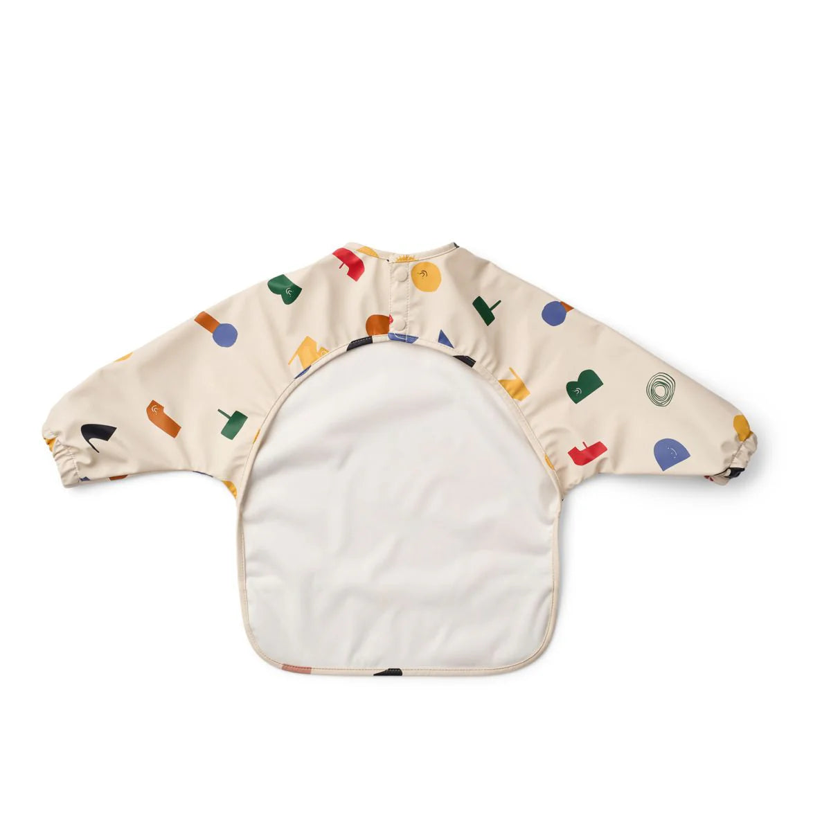 Este babero con mangas es impermeable y tiene un práctico bolsillo en la parte delantera que lo atrapa todo. Es perfecto para proteger la ropa de los peques a la hora de la comida. Se limpia fácilmente y se puede meter en la lavadora.