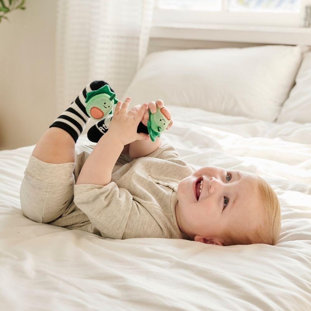 Más que unos calcetines, un despertar sensorial Antes de caminar, el bebé explora el mundo con el cuerpo. Estos calcetines están diseñados para estimular los sentidos a través de los pies, incorporando texturas, sonidos suaves y contrastes visuales que invitan al descubrimiento de forma natural. Favorecen el desarrollo motor y perceptivo Ideales para su uso en casa o durante sesiones de estimulación temprana, estos calcetines ayudan a mejorar la coordinación, el equilibrio y la atención.