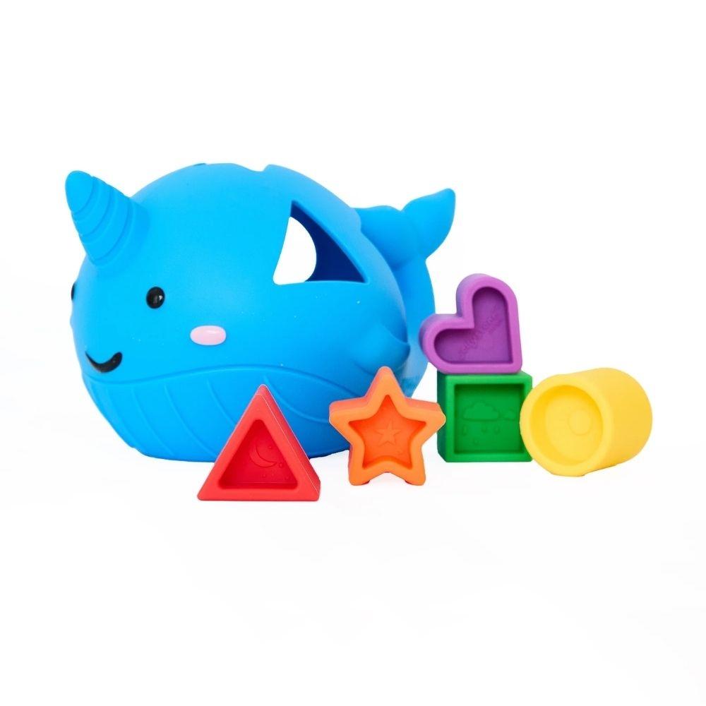 Las cinco formas y el narval se pueden usar tanto en el cuarto de juegos como en la bañera, ya que la silicona se limpia fácilmente con agua tibia y jabón, en el lavavajillas o en un esterilizador de vapor.