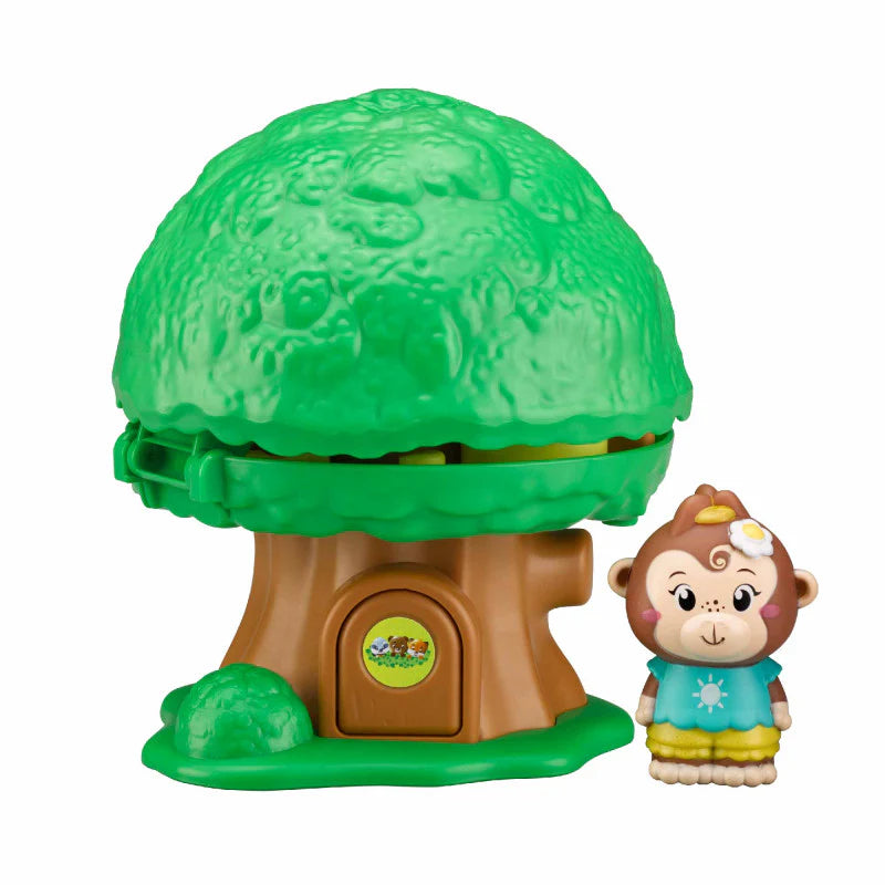 ¡POP! Una pulsación en la puerta y el árbol se abre. Dentro, hay 3 habitaciones por descubrir: el dormitorio, la cocina y el baño.