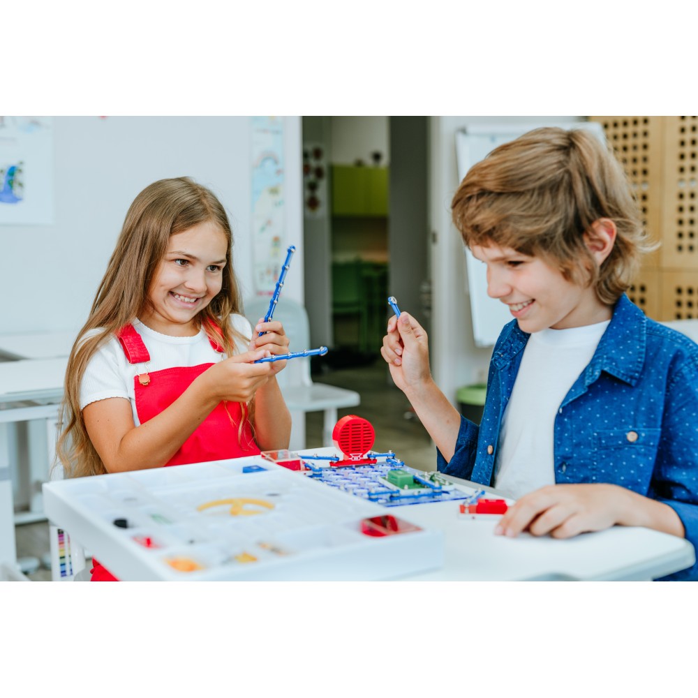 Con este kit los niños pueden construir divertidos circuitos y ver la utilidad en la vida diaria, además de aprender sobre física , electrónica , la manipulación de objetos pequeños y el desarrollo del pensamiento lógico.