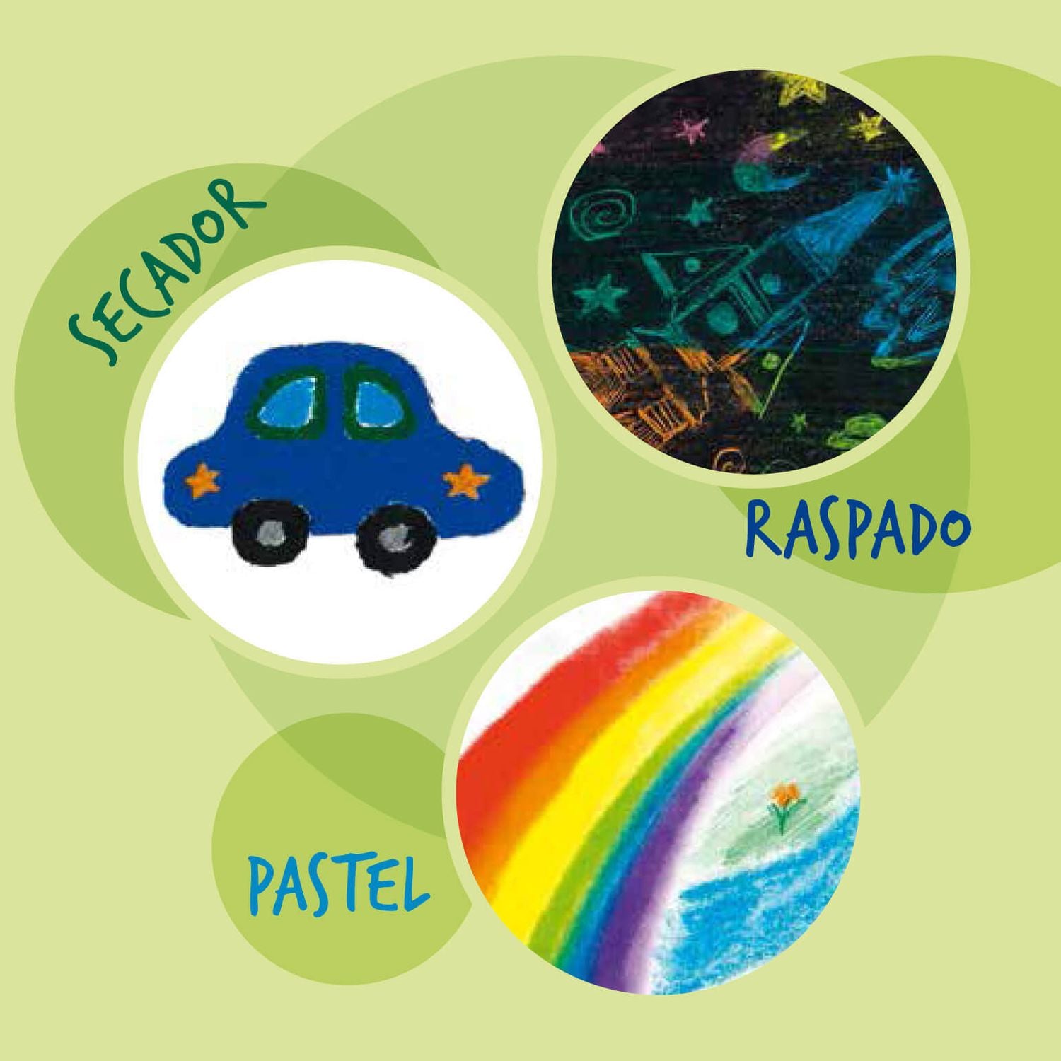- Ideal para grandes áreas y para combinar diferentes técnicas como raspado, pastel, secador, acuarela, plantilla o fottage.