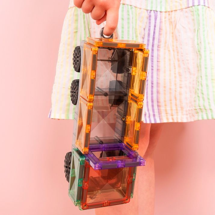 Juego de construcción magnético con 50 piezas translúcidas de colores pastel, para construir un camión de transporte con ruedas, de Connetix.
