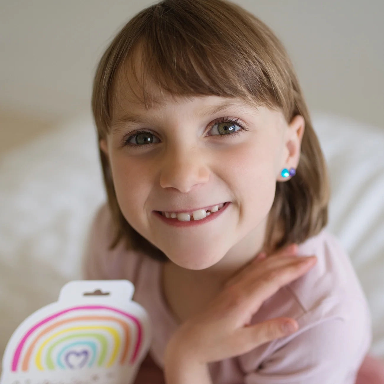 No necesitas orejas perforadas para lucir estos divertidos aretes. ¡Usa un par diferente cada día con estos aretes adhesivos de colores brillantes que incluyen corazones, mariposas, arcoíris, gemas y más! El paquete incluye 30 pares.