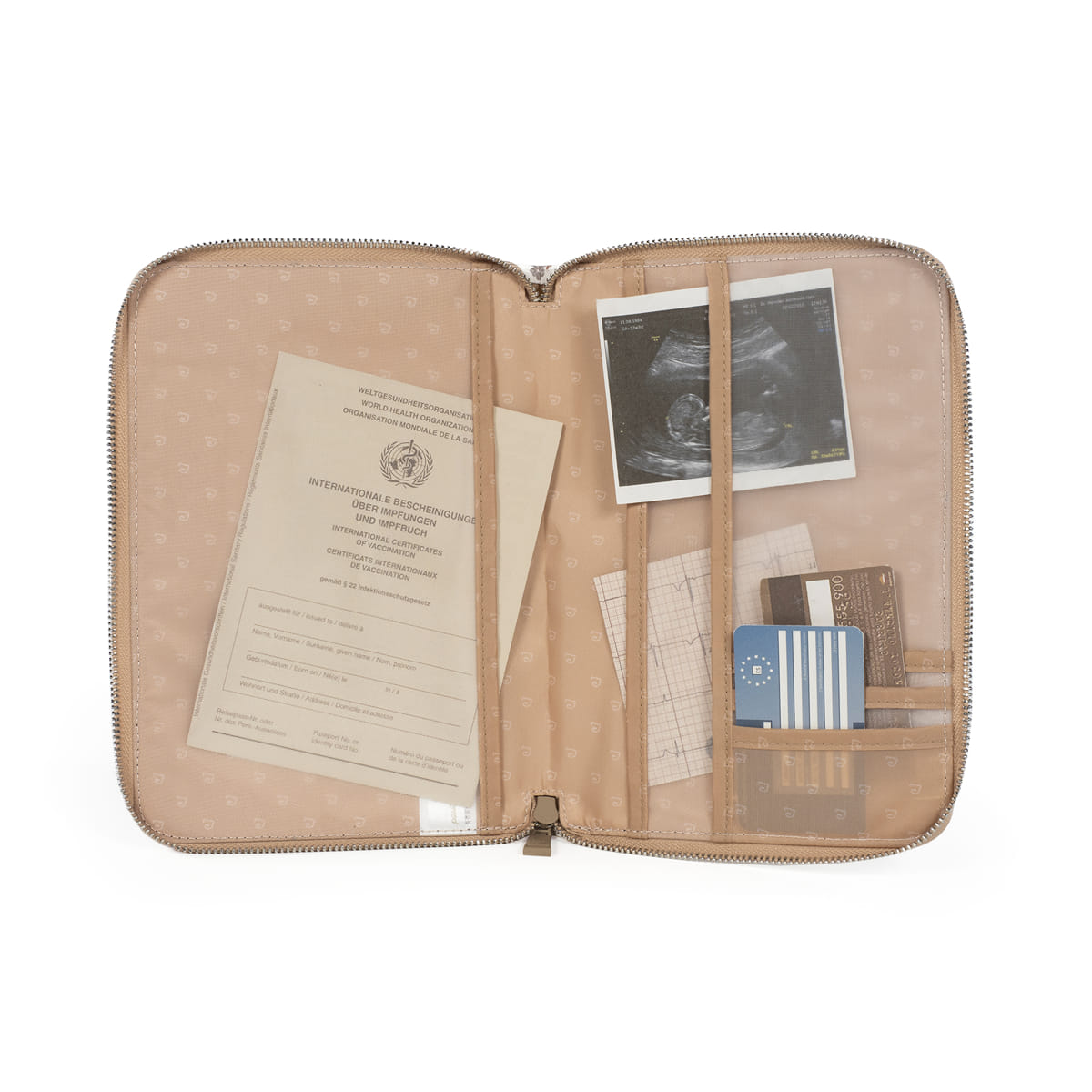 El libro de nacimiento de Pasito a Pasito es un elegante y práctico portadocumentos, diseñado para mantener en orden la documentación médica y los papeles importantes de tu bebé. Su estilo combina a la perfección con la bolsa de maternidad, convirtiéndolo en un accesorio imprescindible para cualquier mamá organizada.