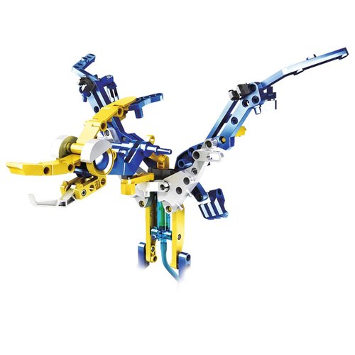 Puedes montar hasta 12 robots diferentes. Funciona con energía solar y propulsión hidráulica. Durante el montaje aprenderás cómo funciona la transmisión de energía y el proceso de transformación de la luz a energía eléctrica.