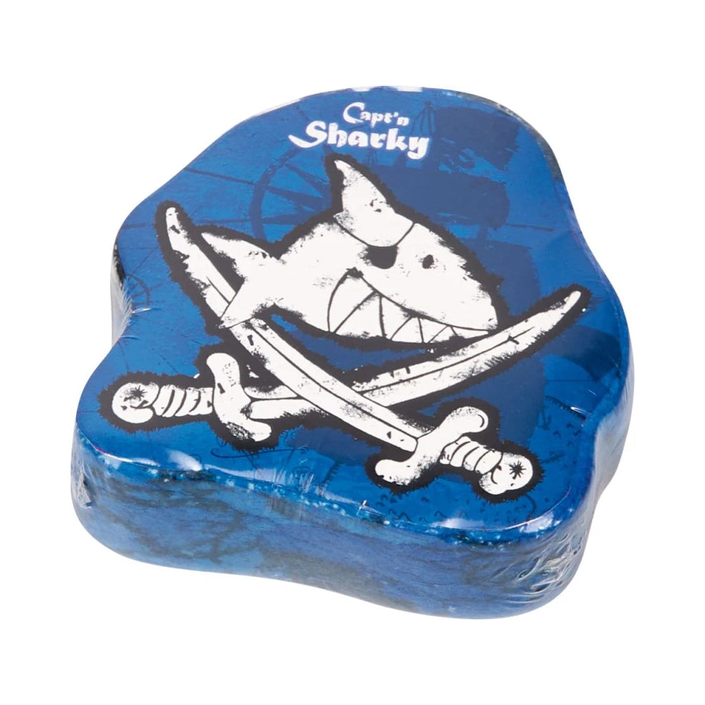 Preciosa toalla Mágica de tiburón. Cuando la sumerges en el agua se convierte en una toalla de verdad. Medidas 30x60 cm.